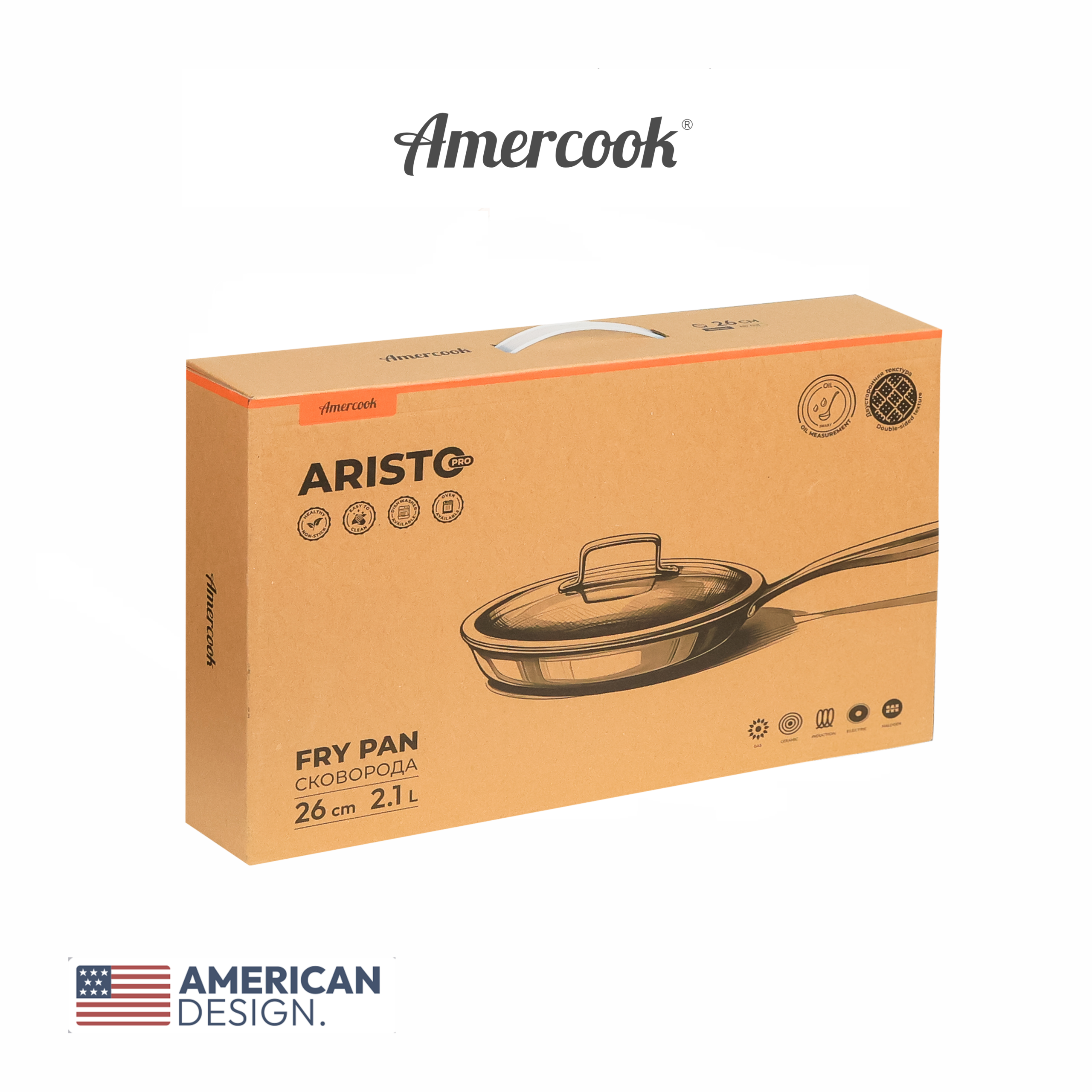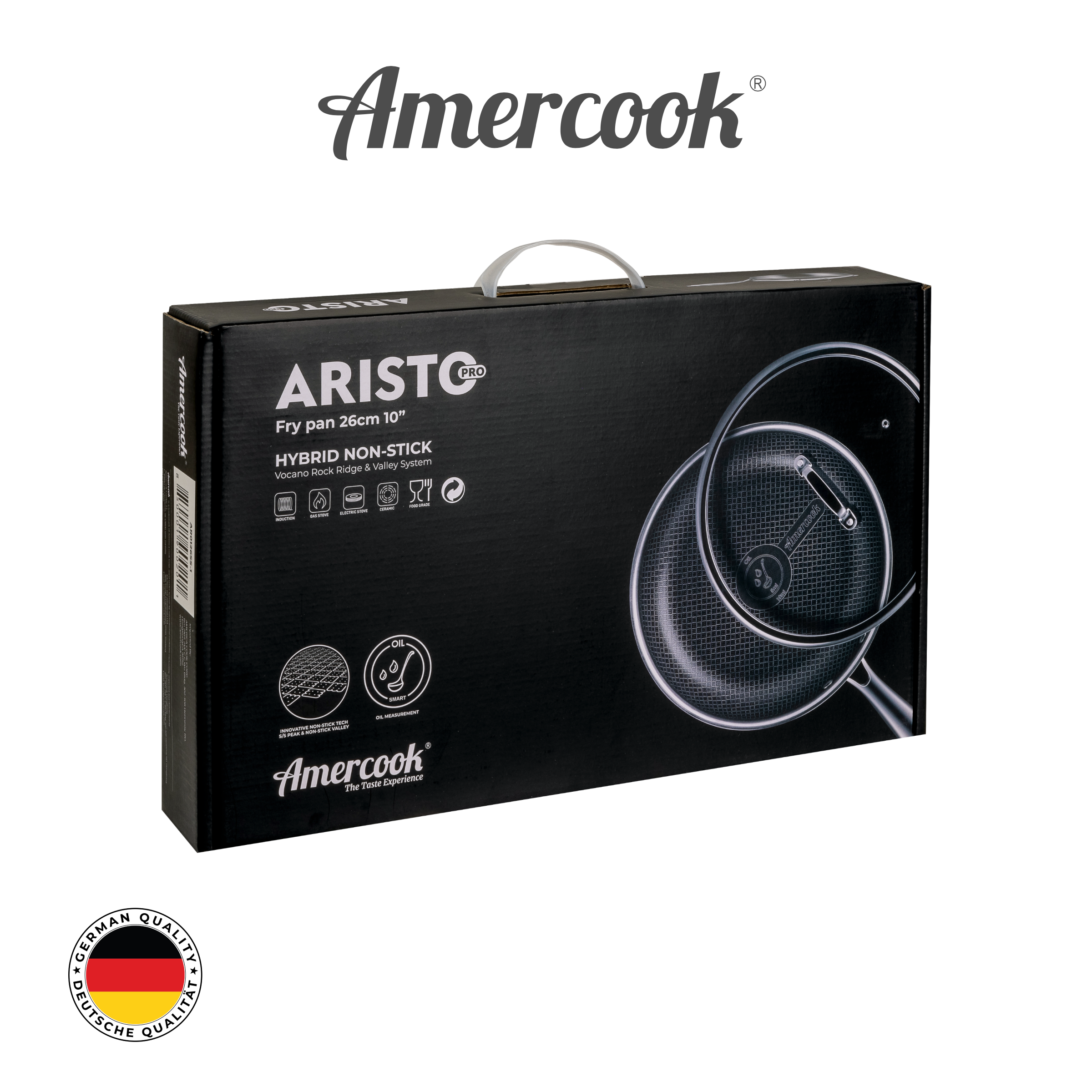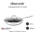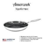 В сковороде Amercook Aristo Pro Series применено гибридное антипригарное покрытие — это сочетание свойств нержавеющей стали и антипригарного покрытия. Гибридное покрытие устойчиво к воздействию пищевых кислот, а значит не портит вкус и качество блюд. Гибридное антипригарное покрытие с рельефным рисунком обеспечивает улучшенные антипригарные свойства и повышенную износостойкость.
