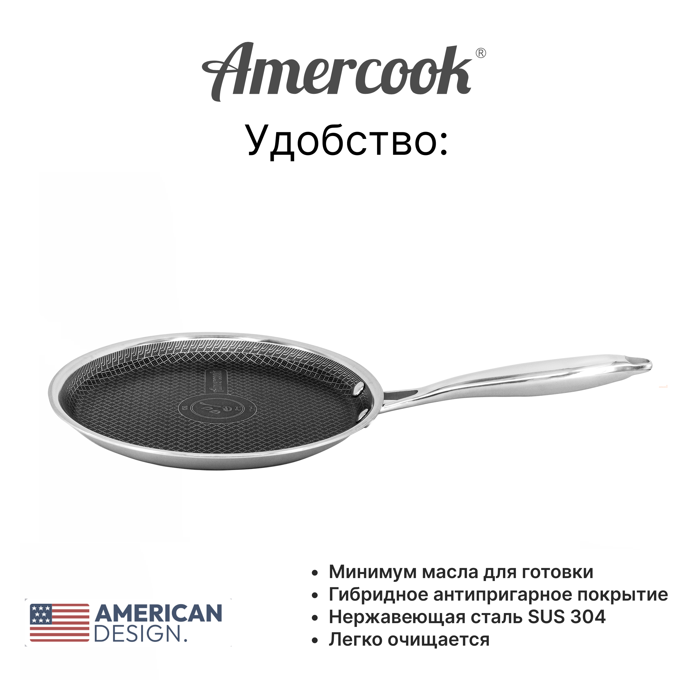 Блинная сковорода Amercook ARISTO PRO Series отлично подойдет для приготовления блинов, панкейков, оладий, лепешек и даже для обжаривания тонких омлетов.