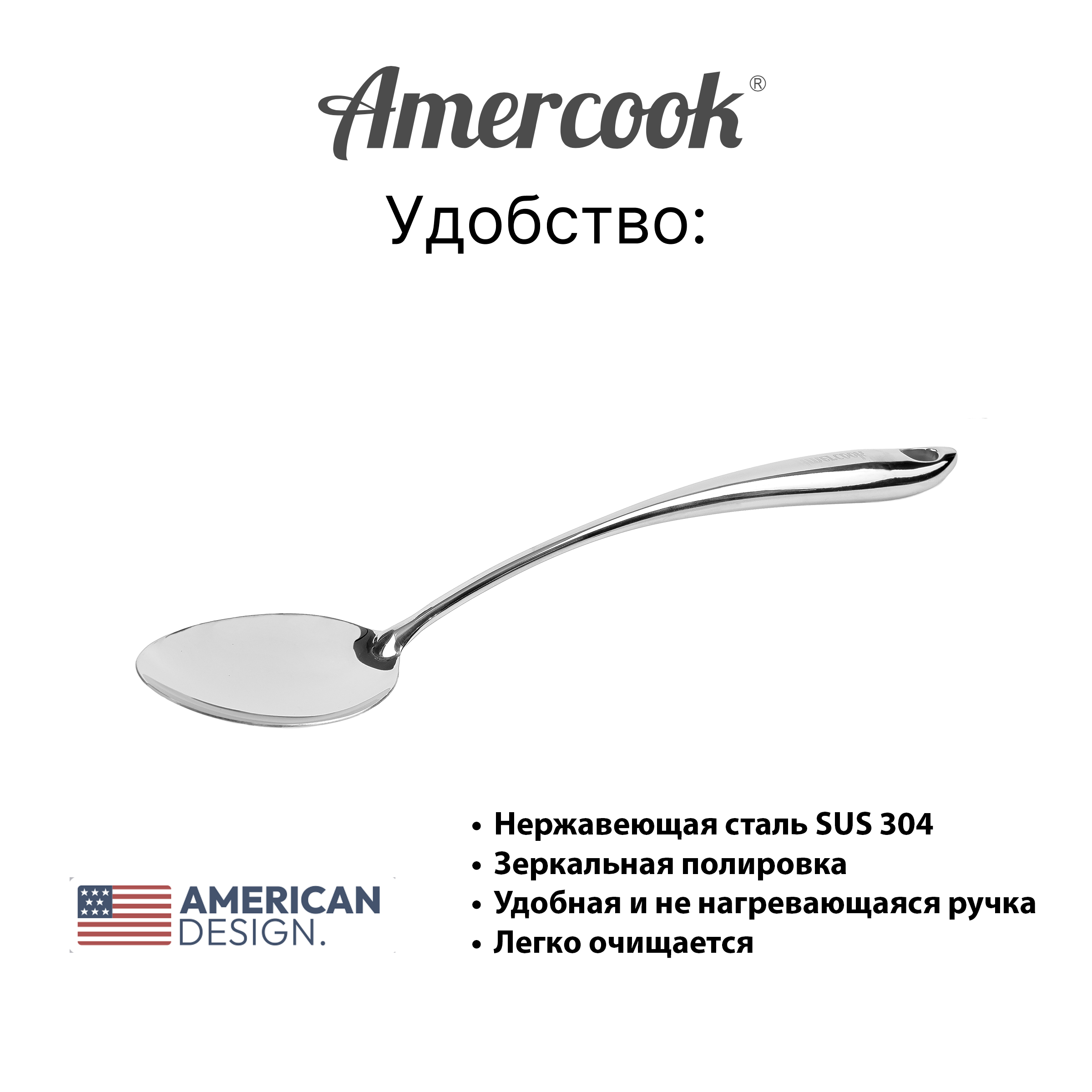 Кухонный аксессуар Amercook – ложка, изготовлена из нержавеющей стали SUS 304.