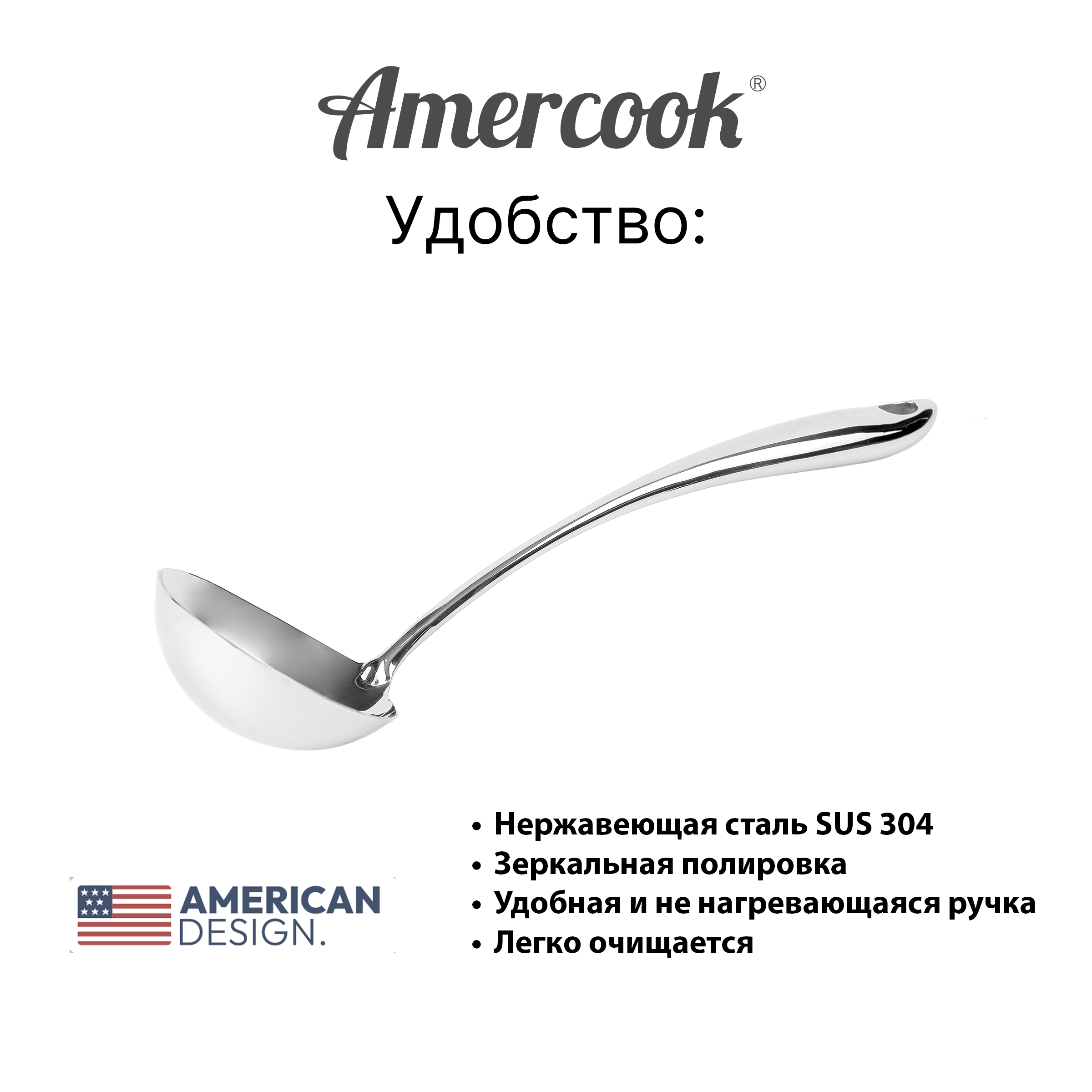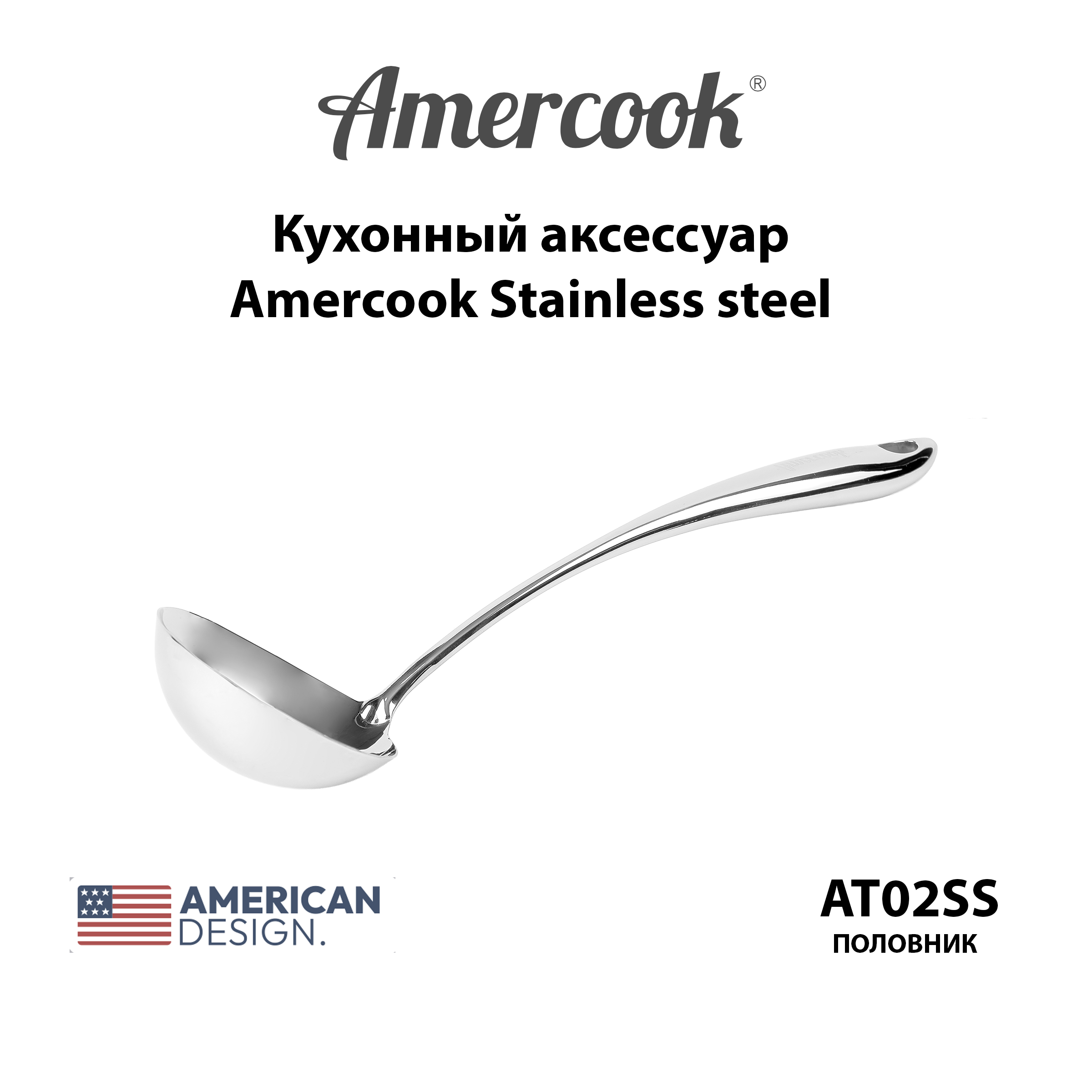 Кухонный аксессуар Amercook – половник, изготовлен из нержавеющей стали SUS 304.