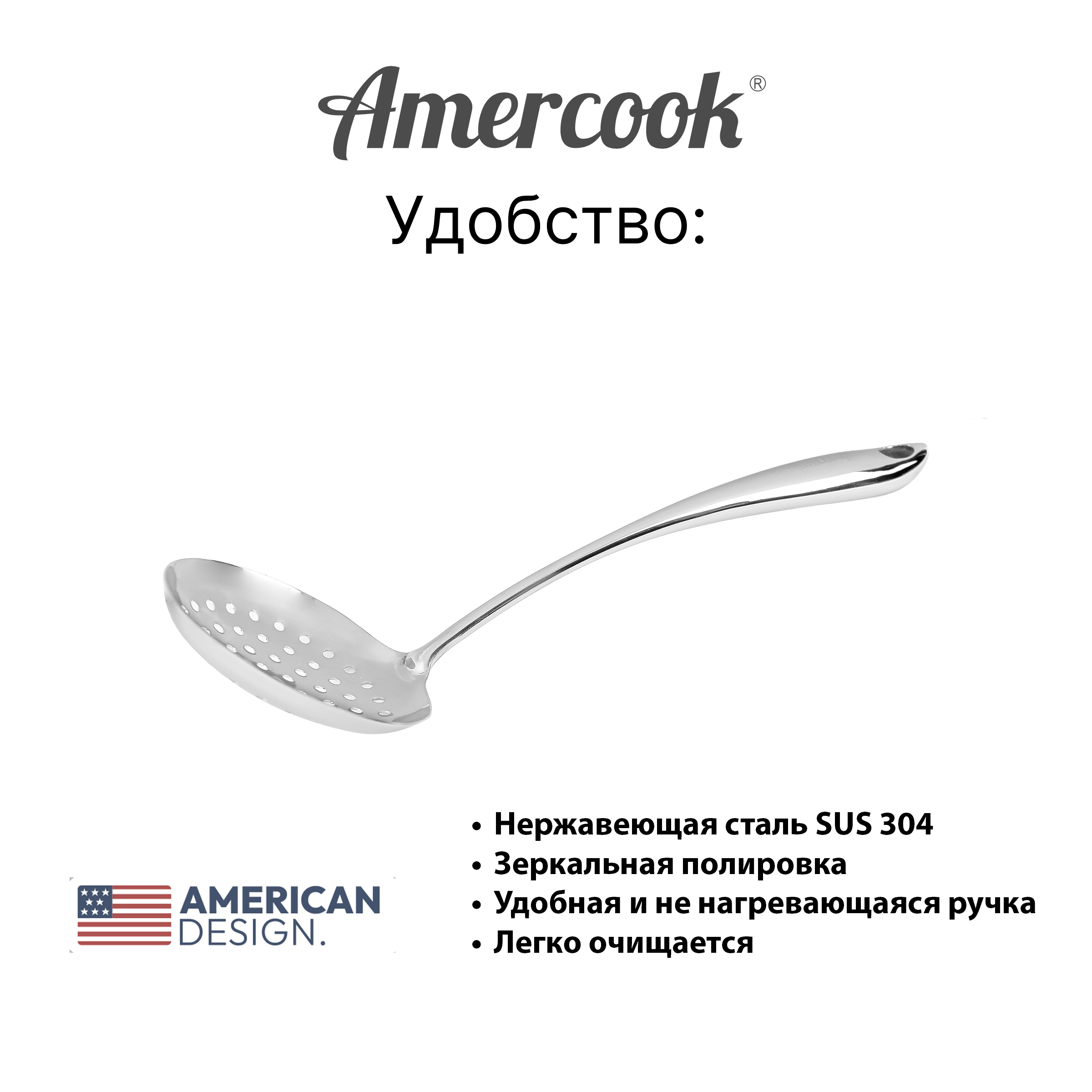Кухонный аксессуар Amercook – шумовка, изготовлена из нержавеющей стали SUS 304.