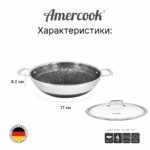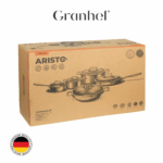 Набор посуды Набор Amercook ARISTO PRO изготовлен из нержавеющей стали марки SUS 304, имеет хорошую теплопроводность и устойчив к коррозии. Стальная цельнолитая конструкция обеспечивает долговечность и устойчивость к высоким температурам.