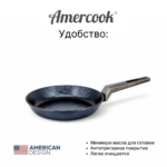 Сковорода Amercook Rockstone Series — обладает специальным антипригарным покрытием, которое предотвращает прилипание пищи к поверхности. Это делает приготовление блюд более удобным и позволяет использовать меньше масла, что способствует более здоровому питанию.