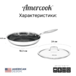 В сковороде Amercook Aristo Pro Series применено гибридное антипригарное покрытие — это сочетание свойств нержавеющей стали и антипригарного покрытия. Гибридное покрытие устойчиво к воздействию пищевых кислот, а значит не портит вкус и качество блюд. Гибридное антипригарное покрытие с рельефным рисунком обеспечивает улучшенные антипригарные свойства и повышенную износостойкость.