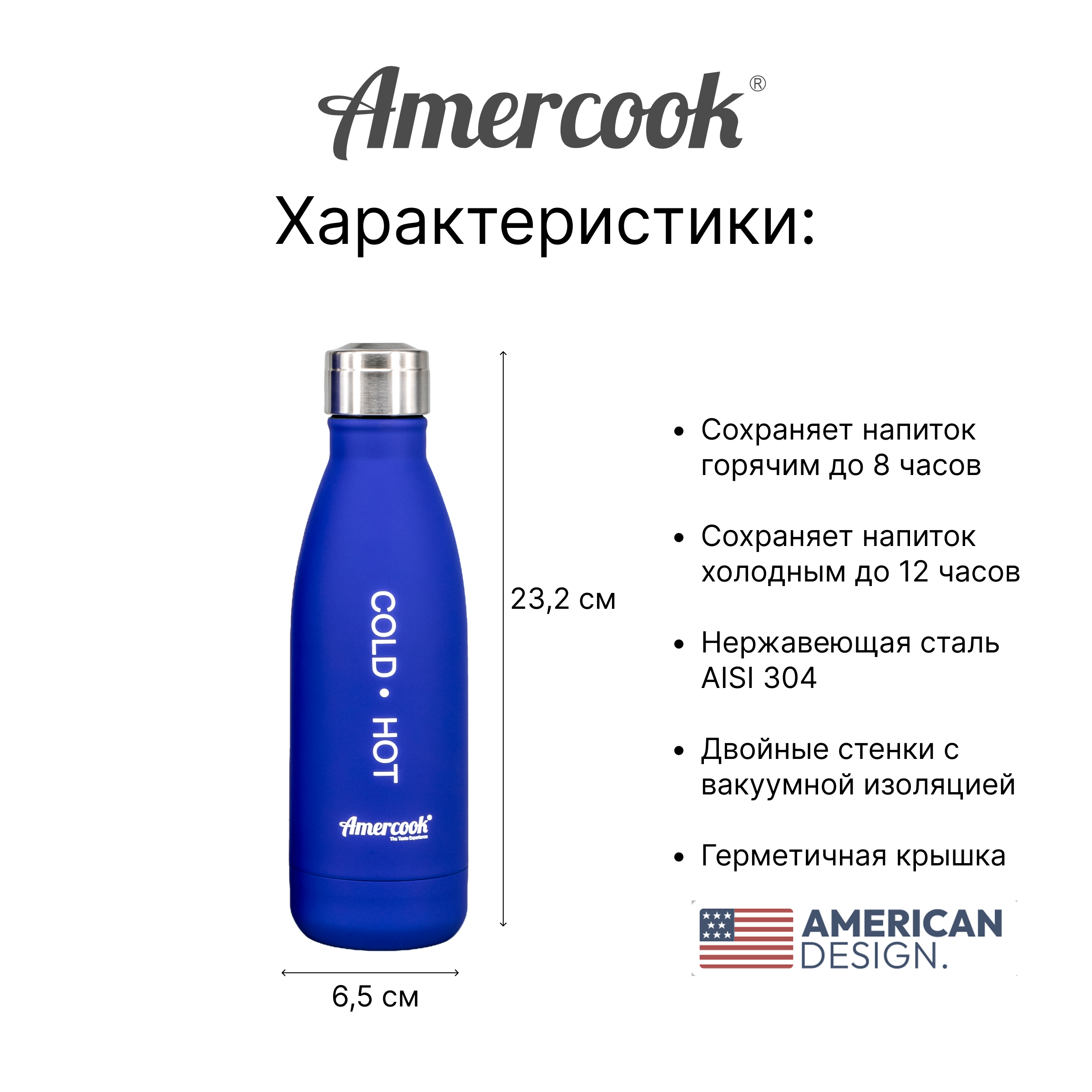 Термо бутылка фитнес Amercook – это практичный и стильный аксессуар, который поможет вам наслаждаться любимыми напитками в любое время и в любом месте.