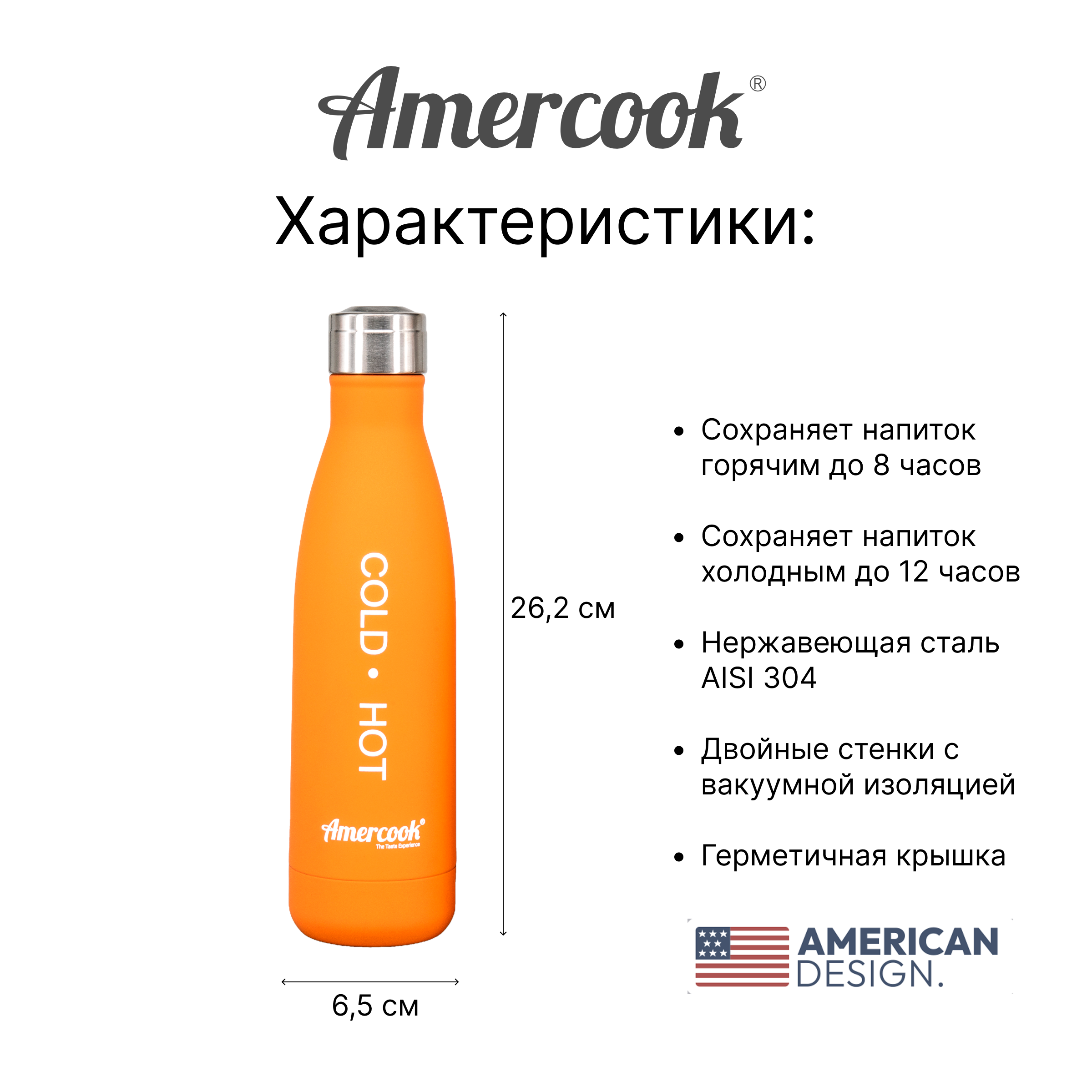 Термо бутылка фитнес Amercook – это практичный и стильный аксессуар, который поможет вам наслаждаться любимыми напитками в любое время и в любом месте.