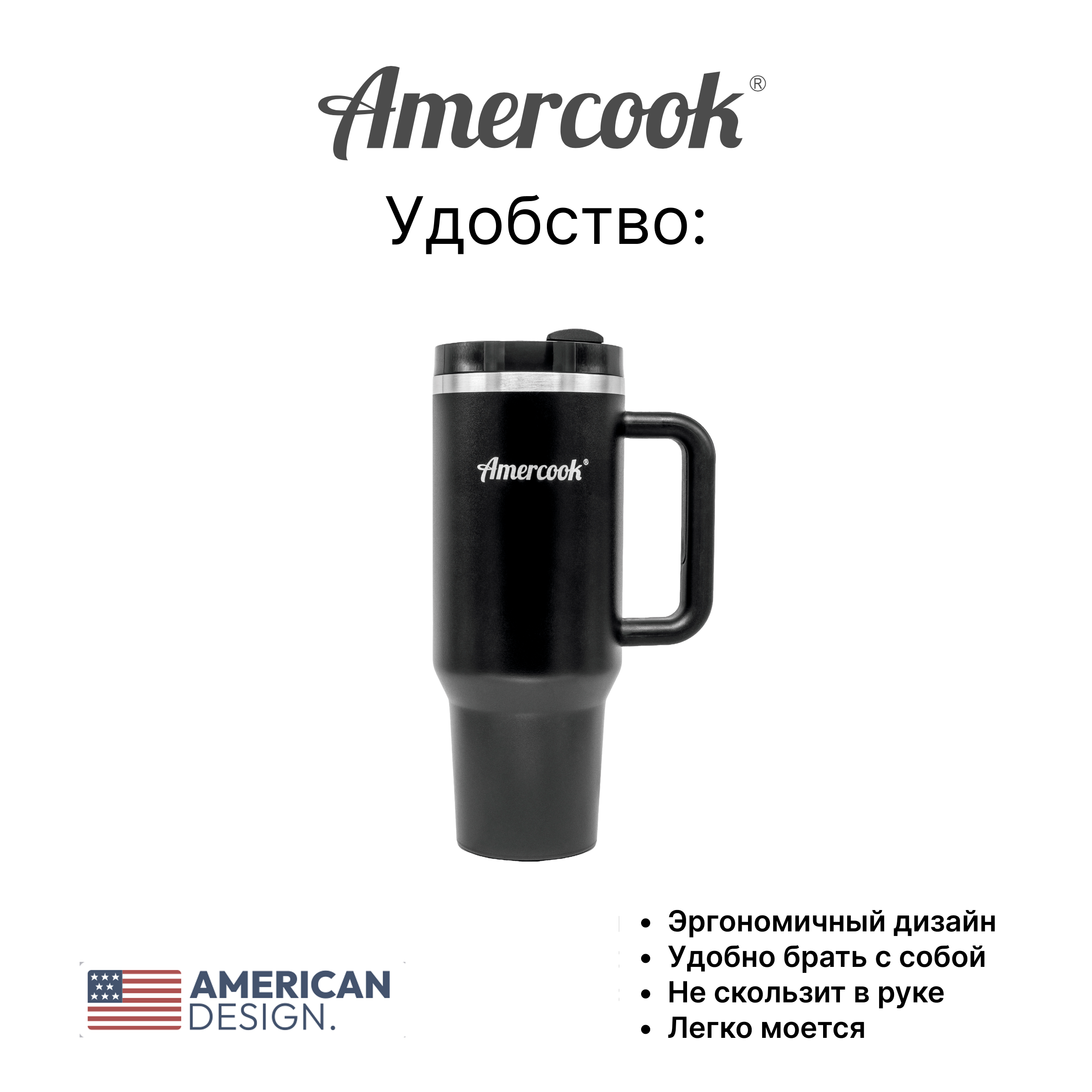 / Товары / Amercook / Термо кружка автомобильная AMD1200CB (Black)