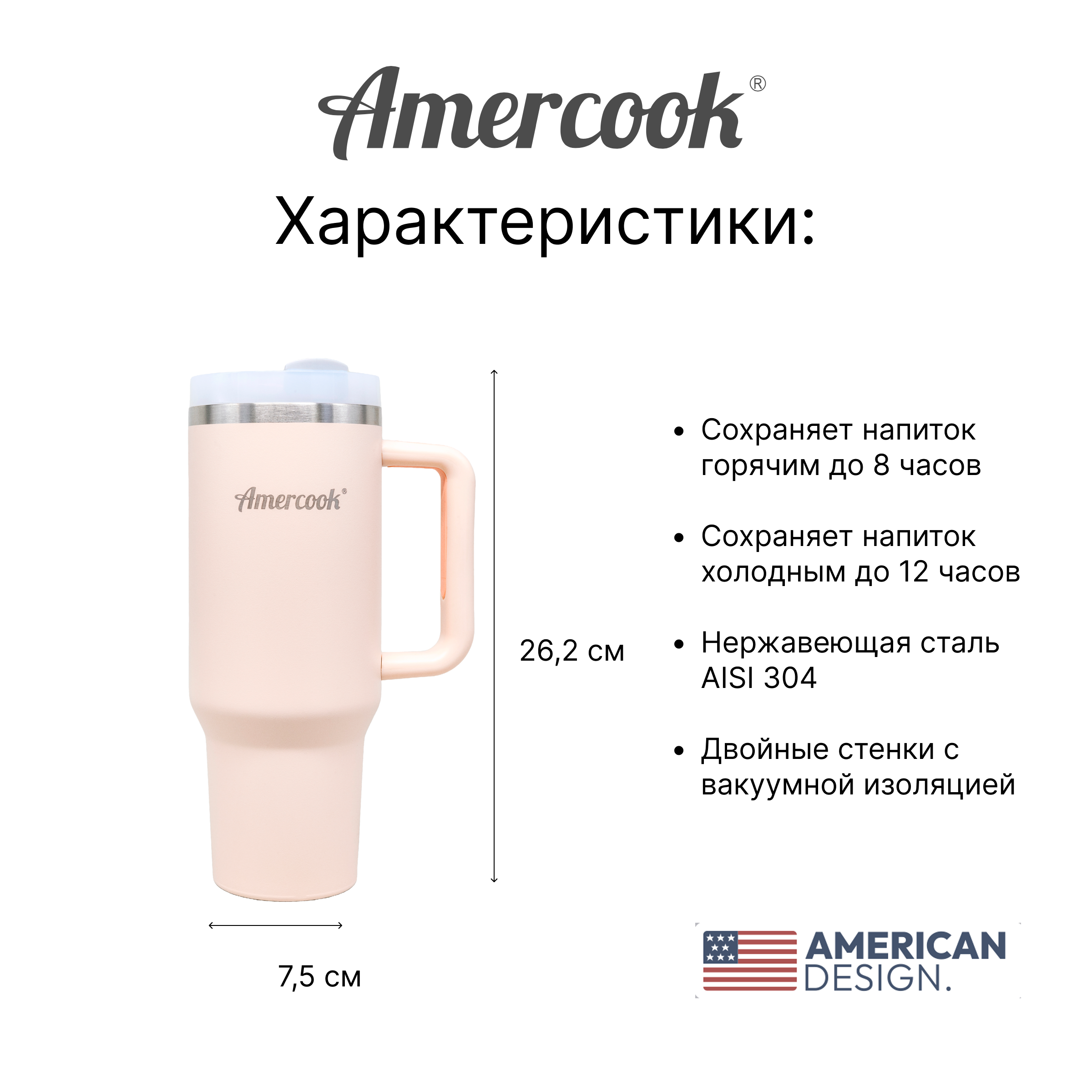 Термо кружка автомобильная Amercook Thermo Series – это незаменимый аксессуар для тех, кто ценит комфорт и мобильность. Термо кружка сохраняет температуру напитков в течение длительного времени, будь то горячий кофе в холодный день или прохладный лимонад в жаркую погоду.