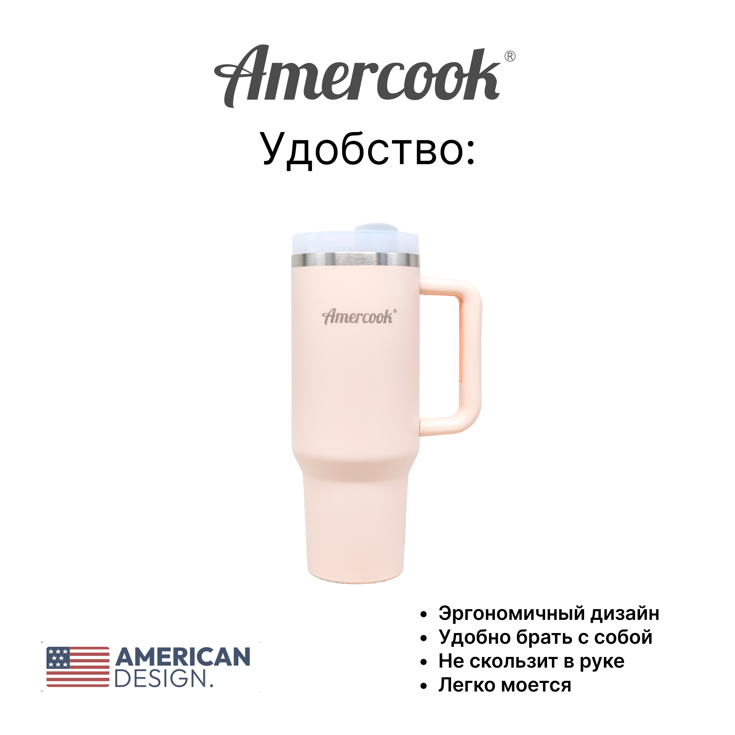 / Товары / Amercook / Термо кружка автомобильная AMD1200CB (Cream)
