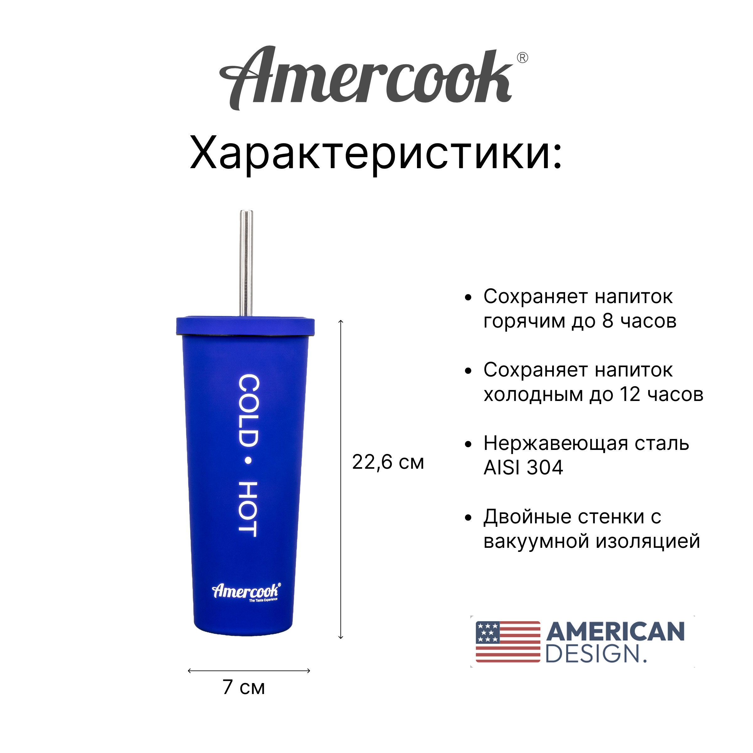 Термо стакан Amercook – это практичный и стильный аксессуар, который поможет вам наслаждаться любимыми напитками в любое время и в любом месте.